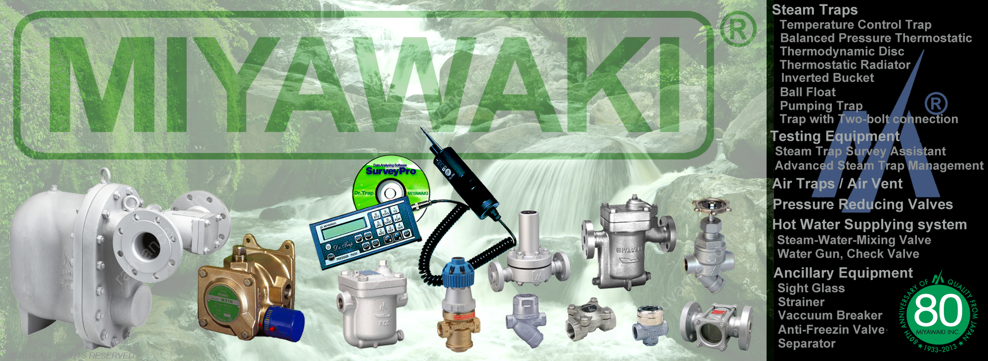 3.การบริหารพลังงานเพื่อลดความสูญเสียในระบบไอน้ำและน้ำร้อน ได้แก่ สตีมแทป(วาล์วดักไอน้ำ) วาล์วลดแรงดัน เซฟตี้วาล์ว แอร์แทป วาล์วผสมน้ำ-ไอน้ำ ตัวกรองสแตนเนอร์ ไซทกลาส เครื่องตรวจเช็คการทำงานสตีมแทป และอุปกรณ์เสริมอื่นๆ